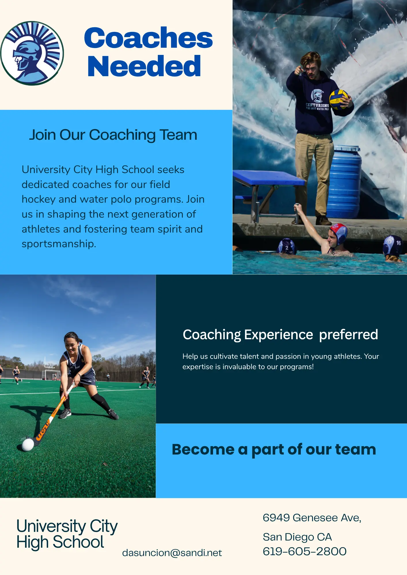 Coaches Needed- Field Hockey, Water Polo, and other positions